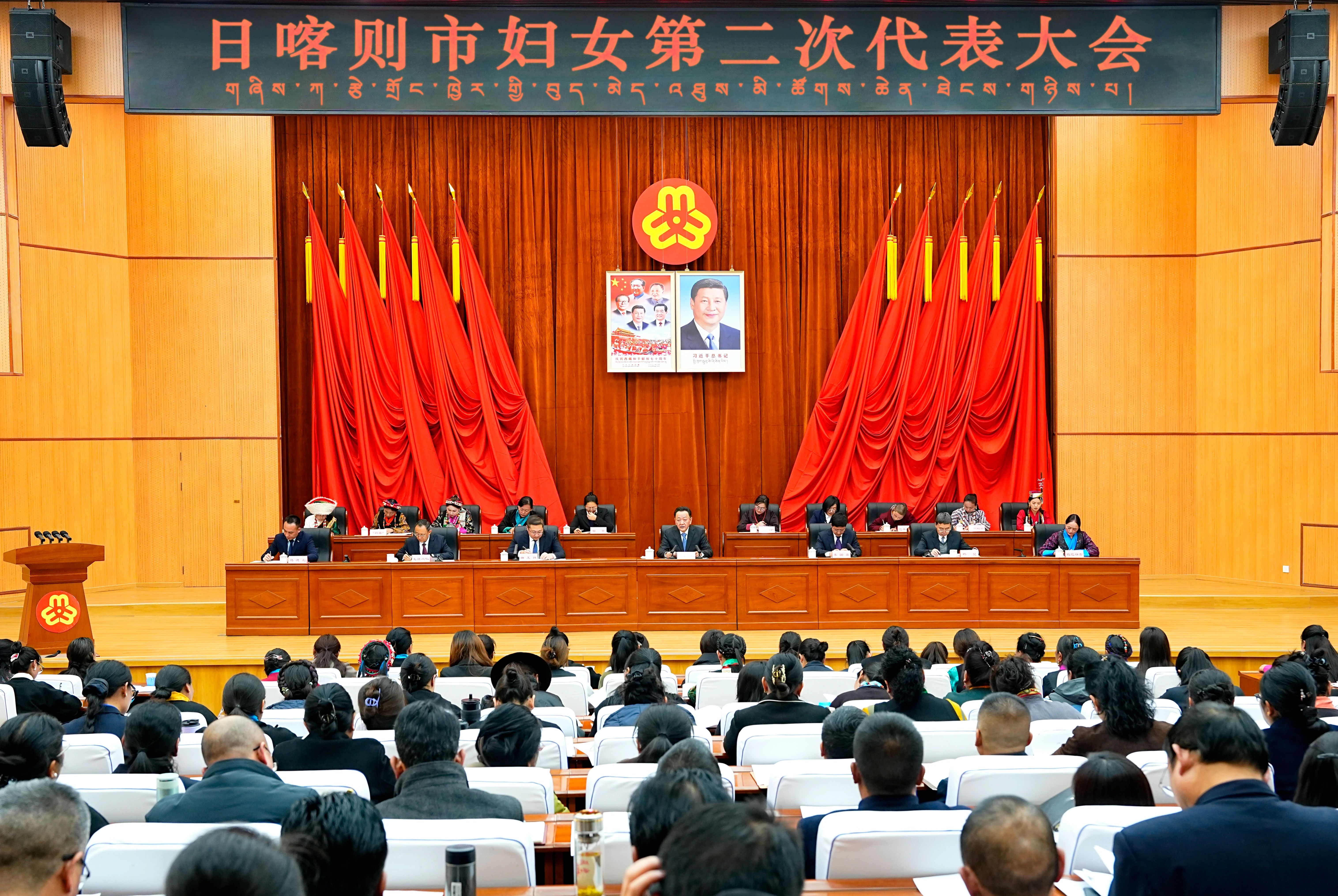 团市委负责同志代表群团组织致贺词,日喀则市妇女第二次代表大会全体代表参加开幕式。