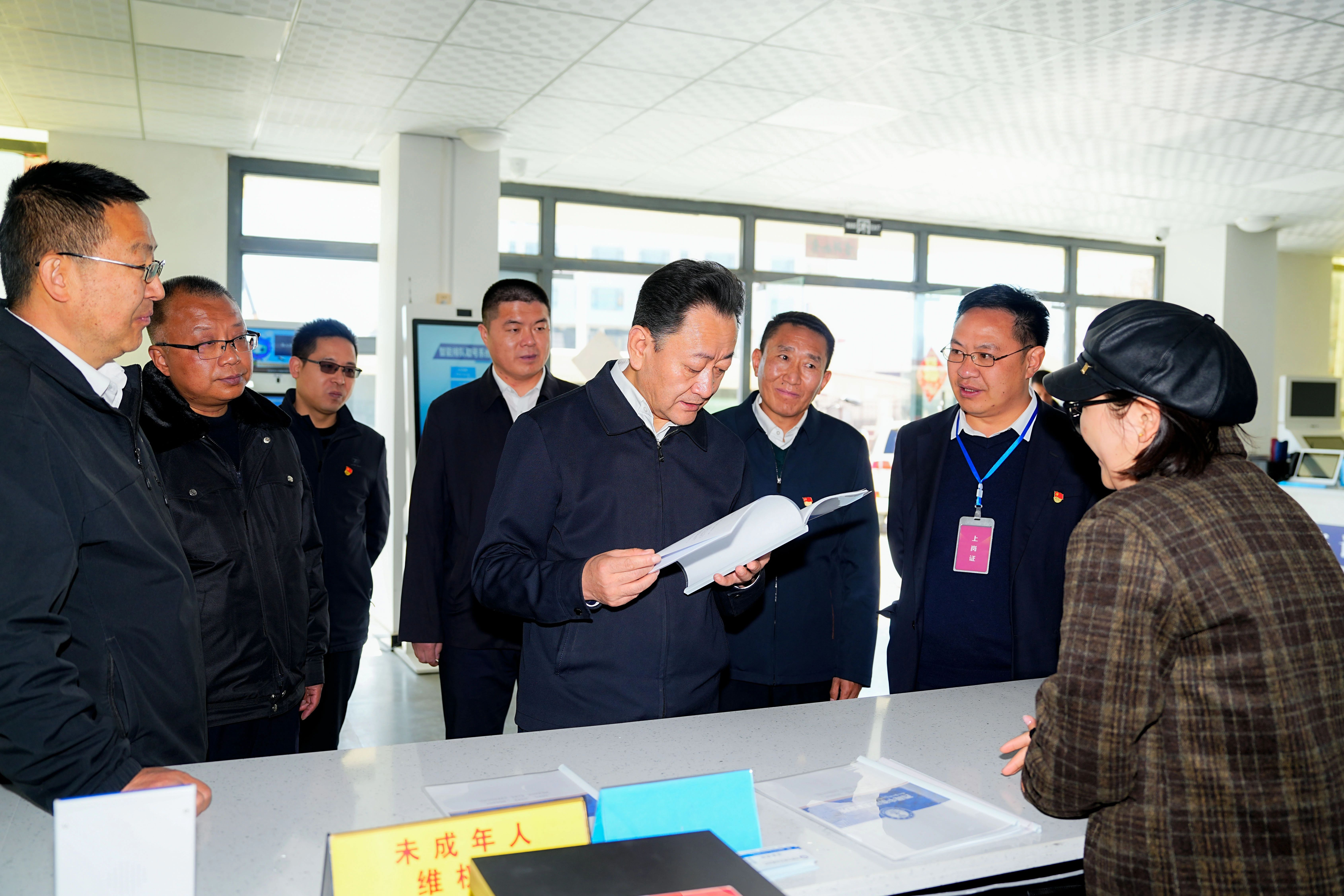 3月18日上午,自治区党委常委、市委书记达娃次仁到市政法系统调研。这是达娃次仁在市公共法律服务中心,与工作人员深入交流,详细了解相关工作开展情况。记者 代旭 摄