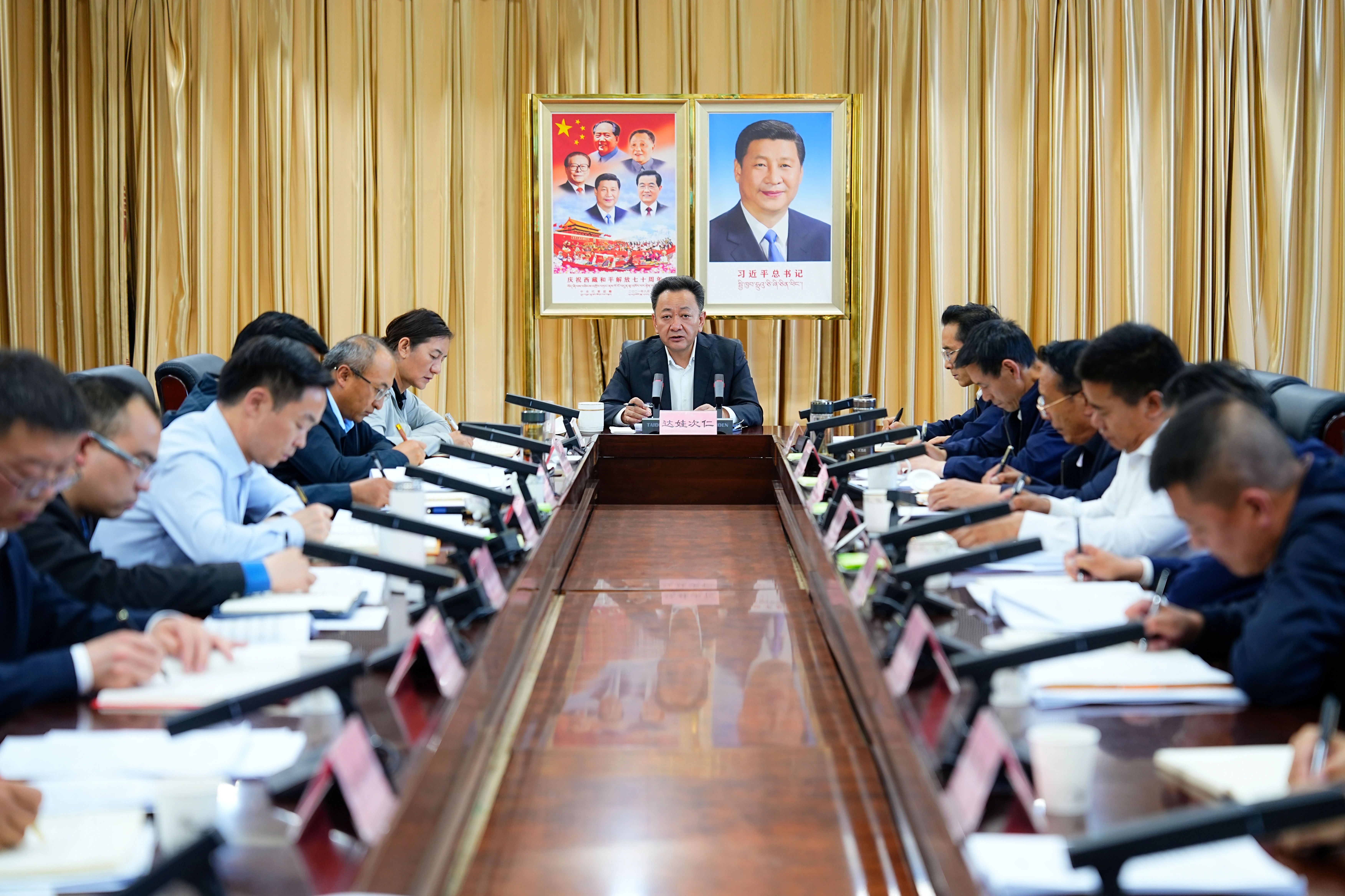6月26日,自治区党委常委、市委书记达娃次仁主持召开会议,研究部署定日6.8级地震灾后恢复重建工作。这是会议现场。记者 代旭 摄
