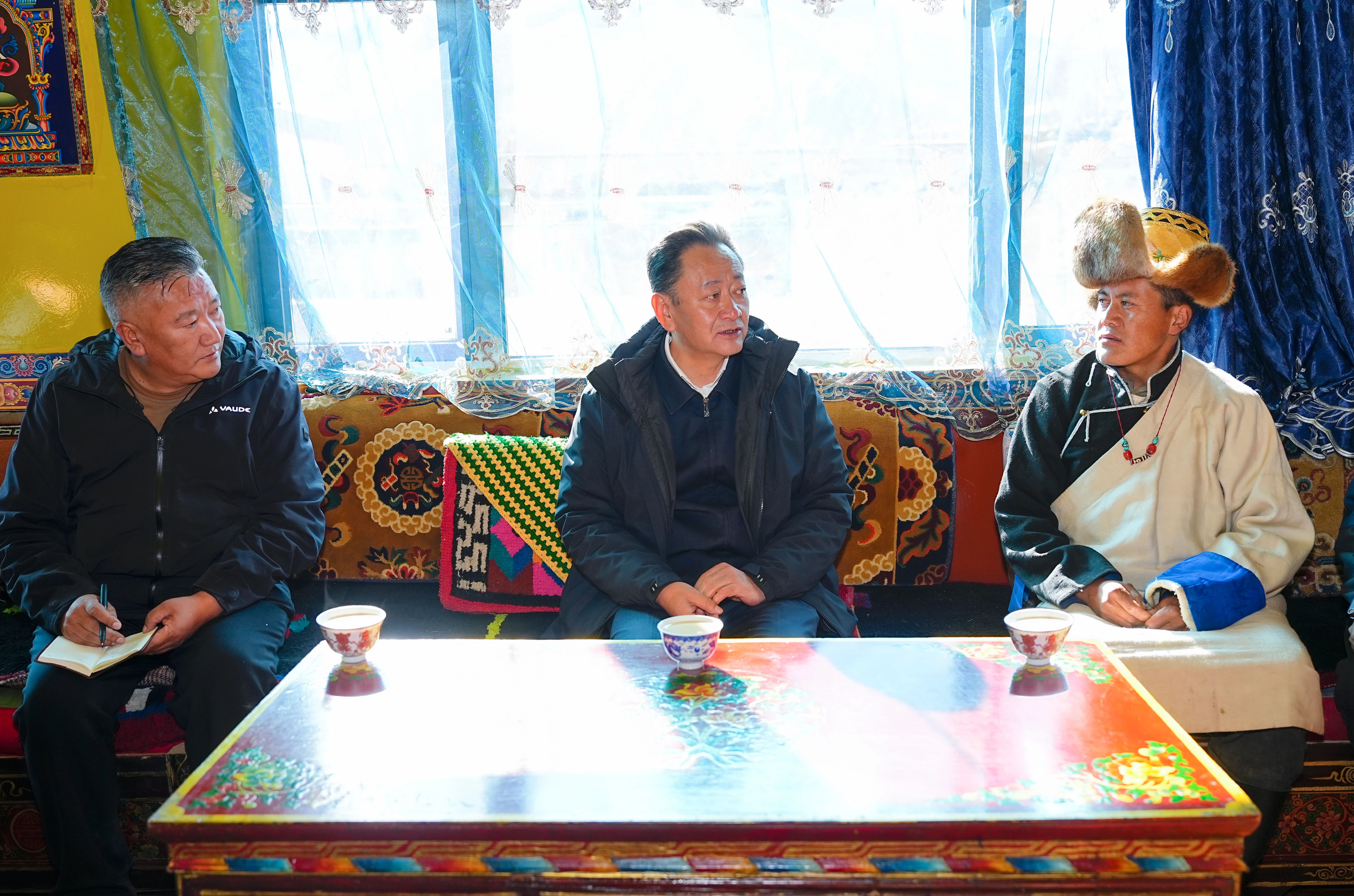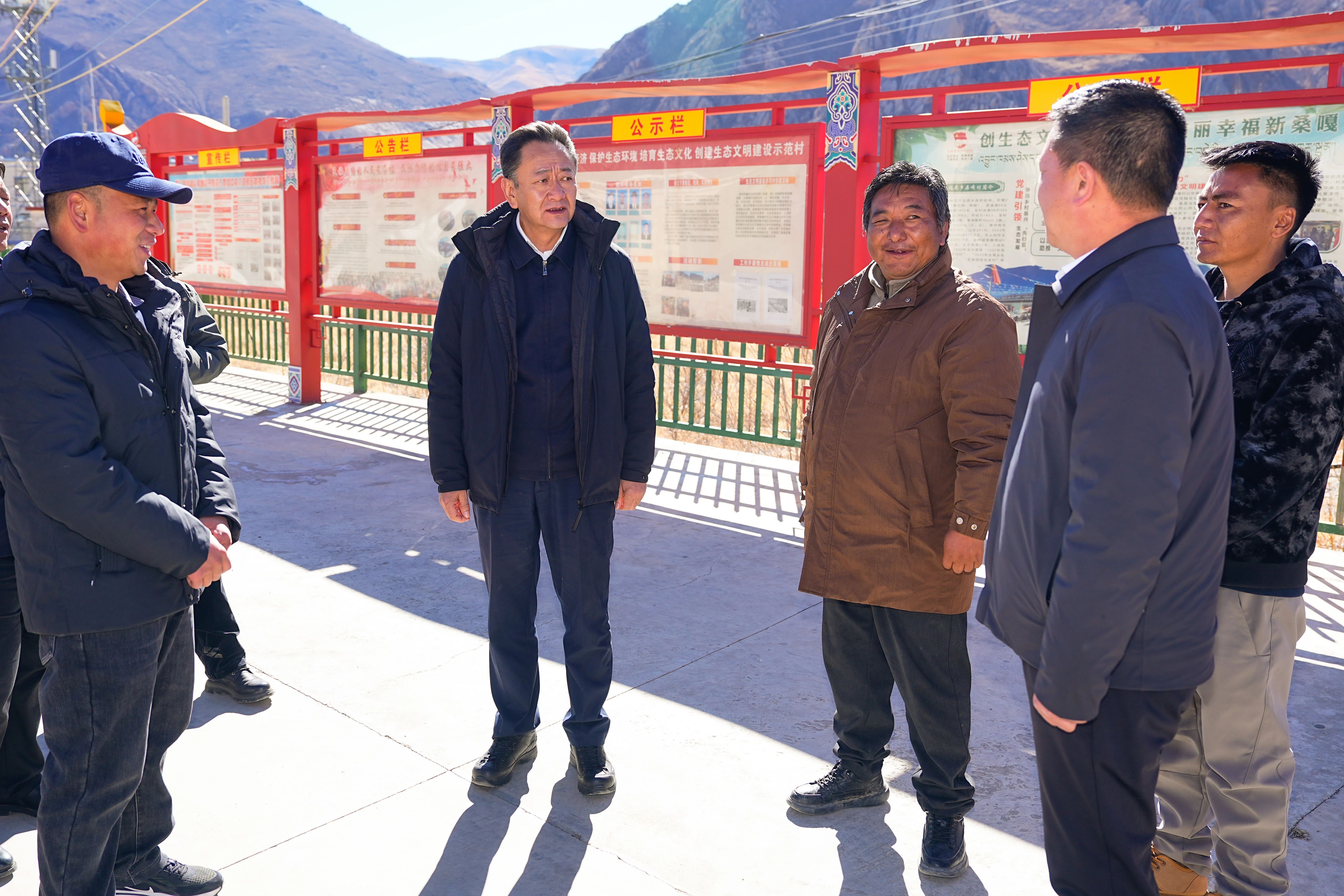 12月10日至11日,自治区党委常委、市委书记达娃次仁深入谢通门、拉孜、昂仁、萨嘎、聂拉木县调研,宣讲党的二十届四中全会精神和自治区党委十届九次全会精神。这是达娃次仁在拉孜县彭措林村调研巩固提升灾后恢复重建成果情况。记者 代旭 摄