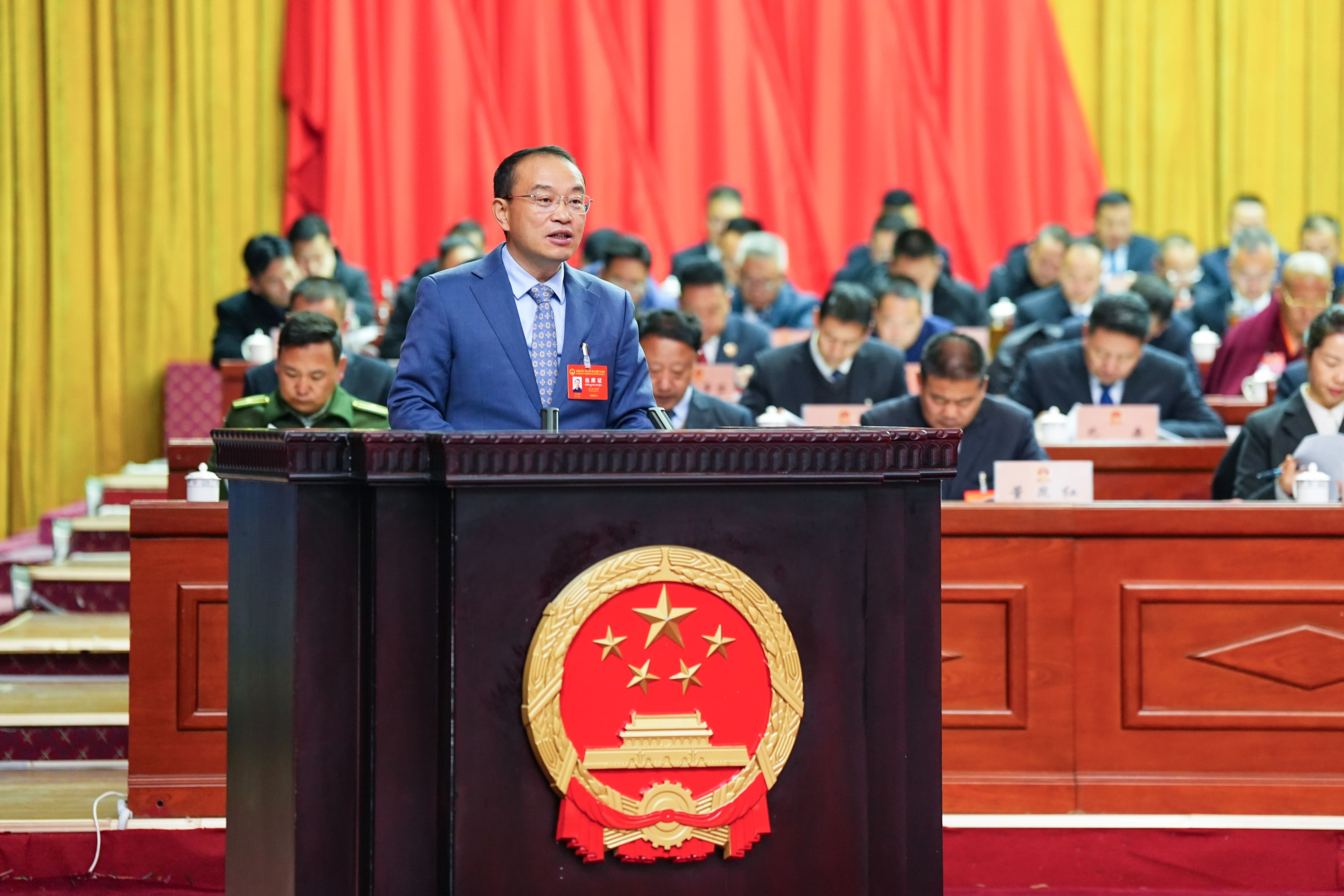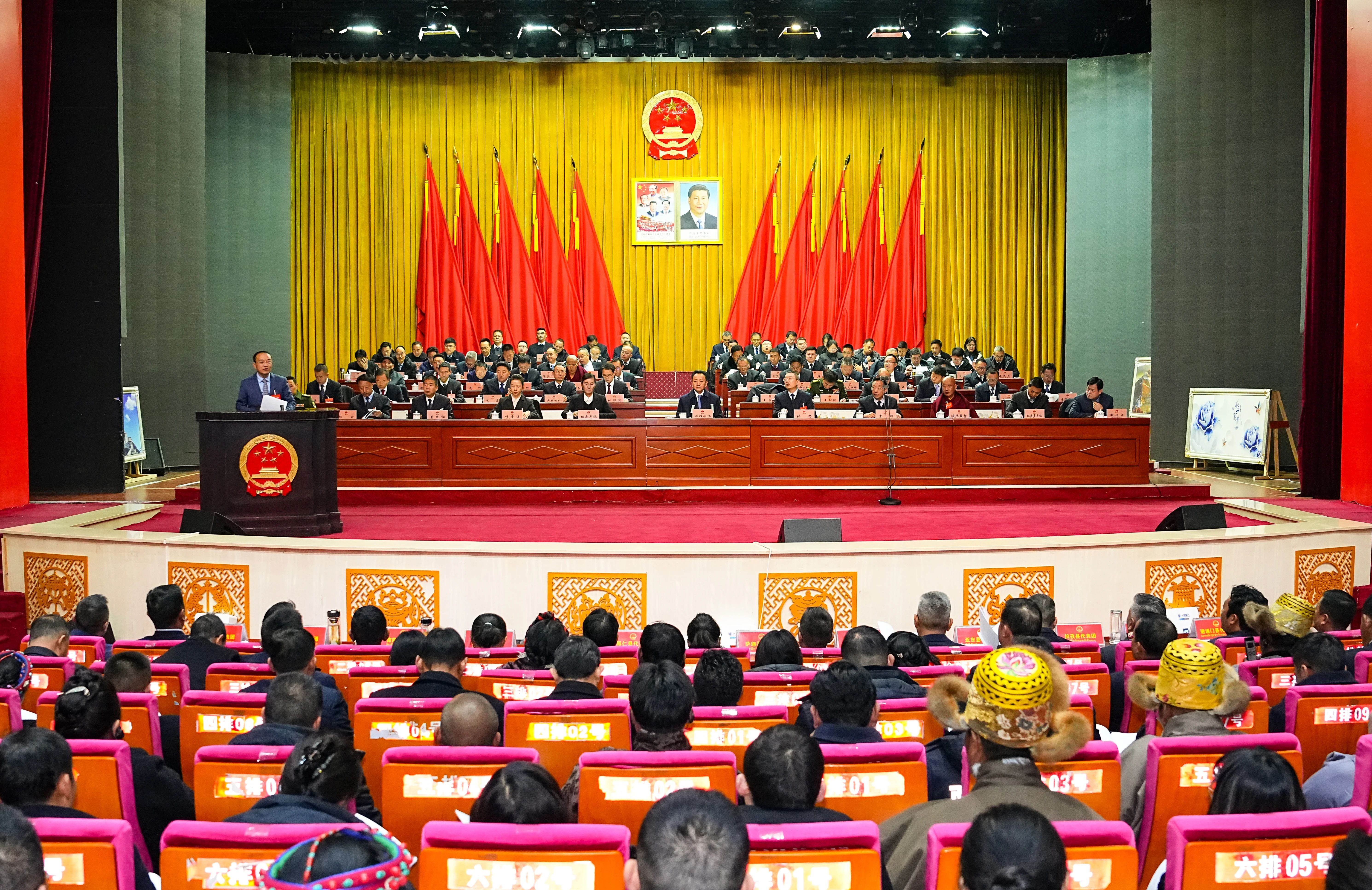王方红、张绍建、土旦次仁、王树俊、索朗扎巴、巴桑、陈钢、母兴斌等部分代表和特邀人员,主席团其他人员在主席台就座。