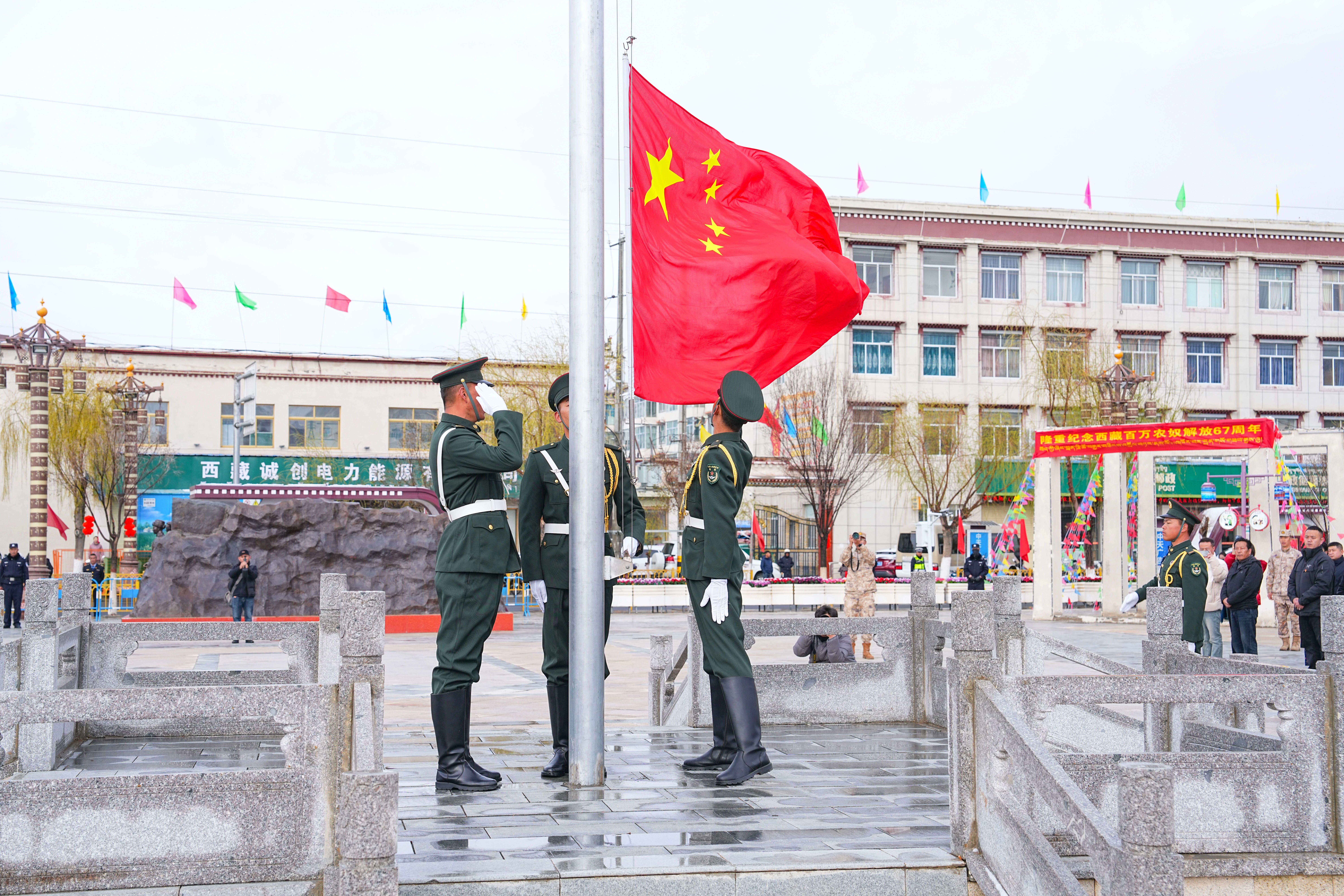 铭记光辉历史,凝聚奋进伟力。3月28日上午,日喀则市在四号公园举行升国旗唱国歌仪式,纪念西藏民主改革67周年。