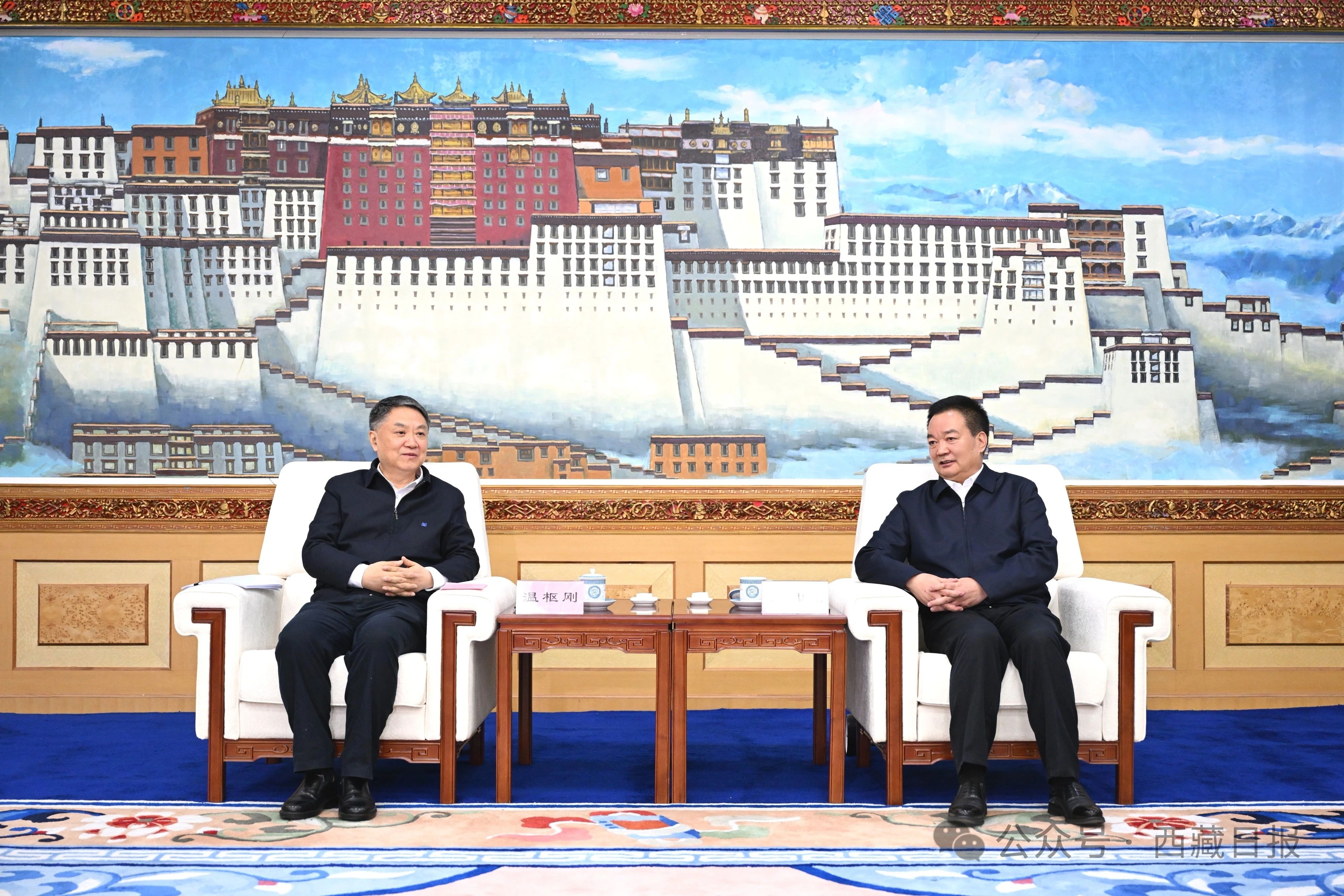 近日,自治区党委书记王君正在拉萨与中国华能集团有限公司党组书记、董事长温枢刚一行座谈,并共同见证自治区人民政府与中国华能集团有限公司签署战略合作协议。