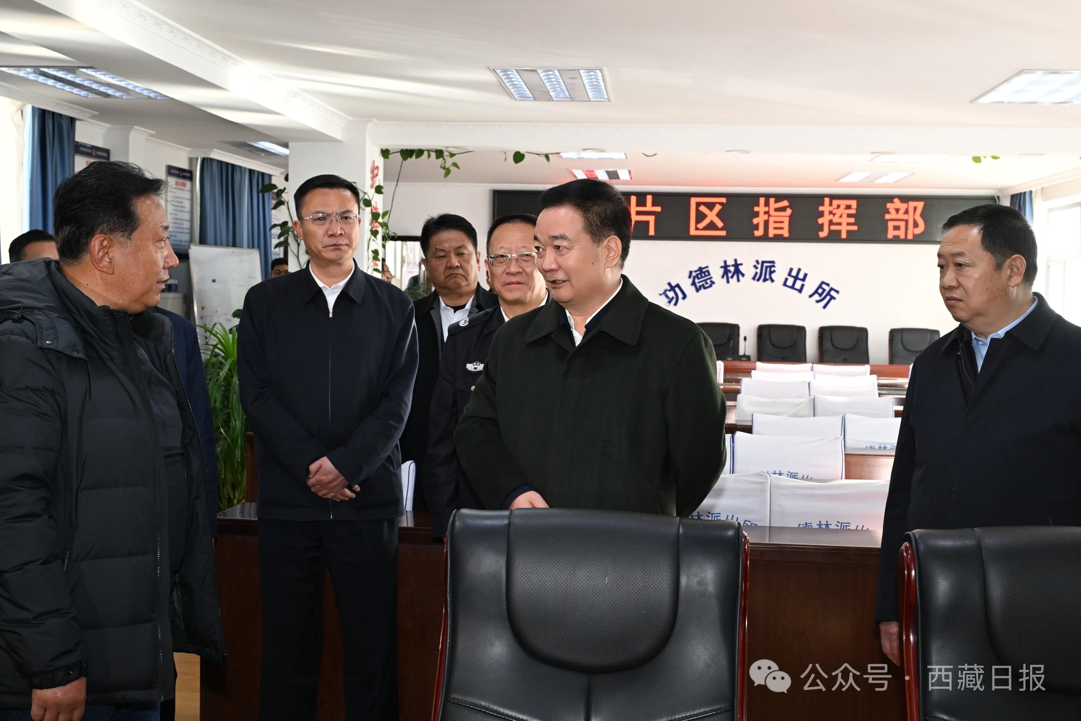 王君正来到拉萨市公安局城关分局功德林派出所,走进治安室、办案队、综合指挥室、荣誉室,认真了解勤务运行、便民服务、队伍建设等情况,仔细询问户籍办理、警情接处和矛盾纠纷排查化解等工作。指出,社会治理体系和治理能力现代化水平要在基层得到全面落实,推动基层治理重心下移、力量下沉,强化风险预测预警预防,加强科技赋能,加快信息化建设,提高基层治理社会化、法治化、智能化、专业化水平,进一步夯实长治久安和高质量发展的基础。