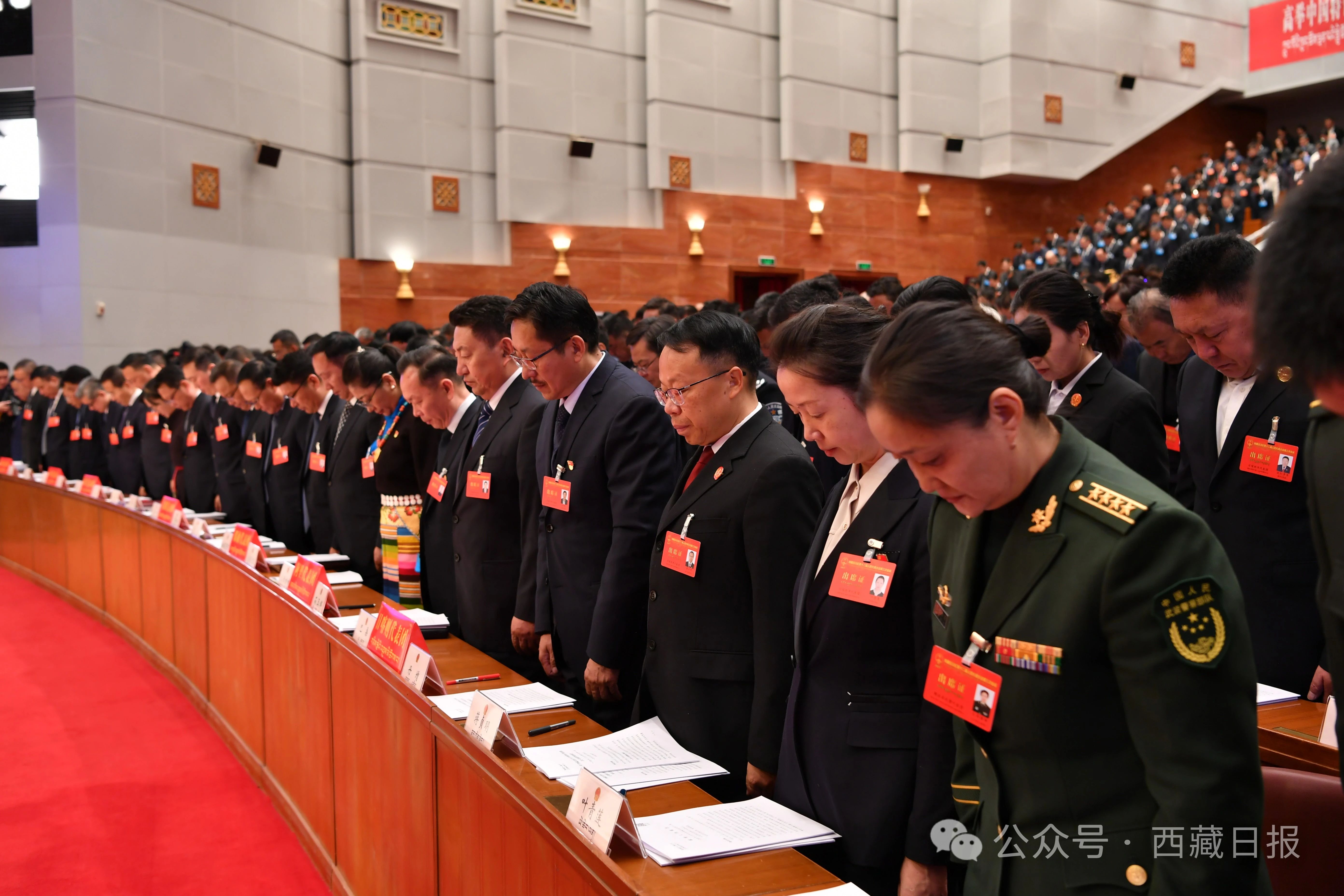 随后,洛桑江村宣布:西藏自治区第十二届人民代表大会第三次会议开幕。会场全体起立,高唱国歌。