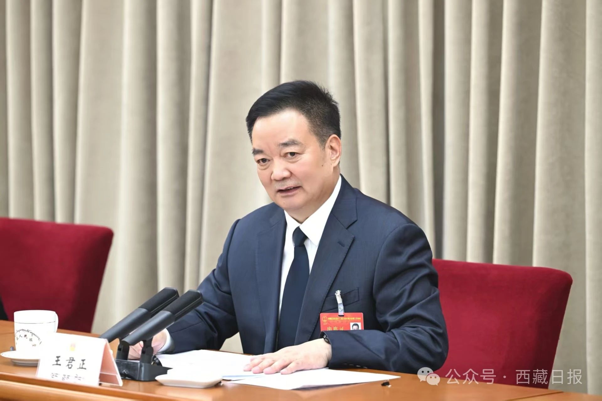 王君正表示,洛桑江村同志代表自治区人大常委会作的工作报告,全篇贯穿习近平总书记关于坚持和完善人民代表大会制度的重要思想,体现了党中央决策部署和自治区党委工作安排,总结成绩实事求是,谋划目标稳中有进,部署工作针对性强,自治区“两院”工作报告通篇贯穿习近平法治思想,符合西藏实际,完全赞成。