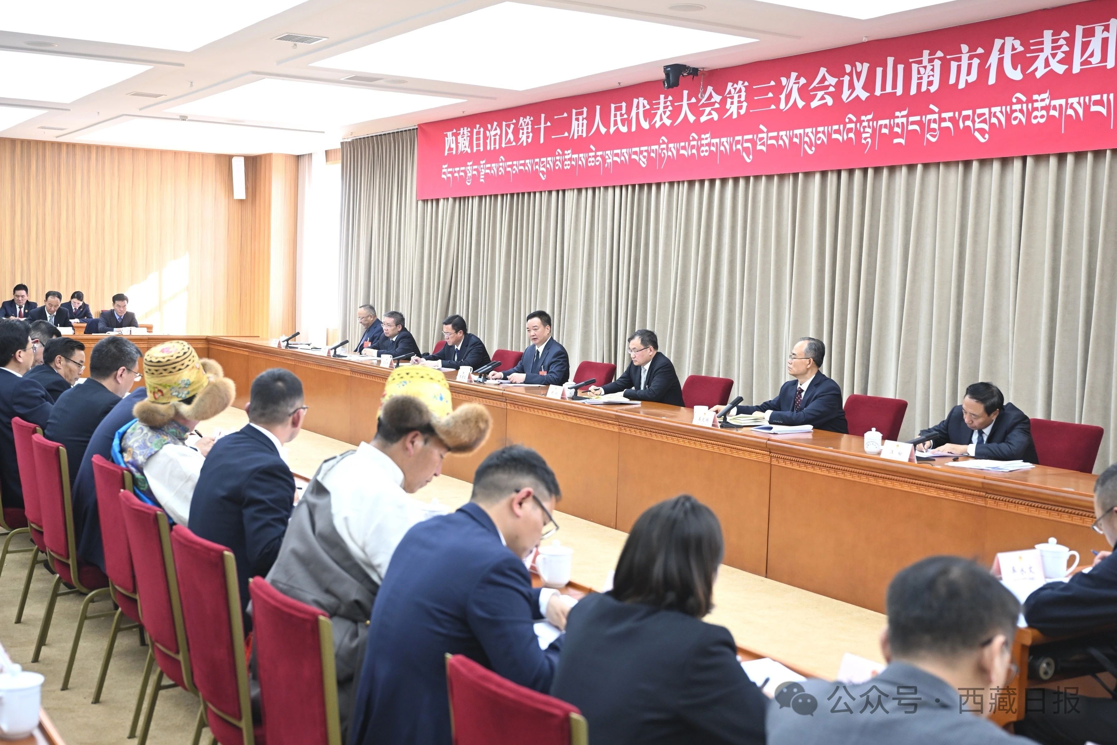 审议中,李富忠、李宁、尼玛次仁、王德文、卓玛、鲁绪超、白玛拉姆7位代表先后发言,围绕推动经济社会高质量发展、加强基础设施建设、提高基层人大工作质效、打造高素质教师队伍、城市规划建设、文旅深度融合发展等建言献策。王君正认真听取发言,与大家互动交流。
