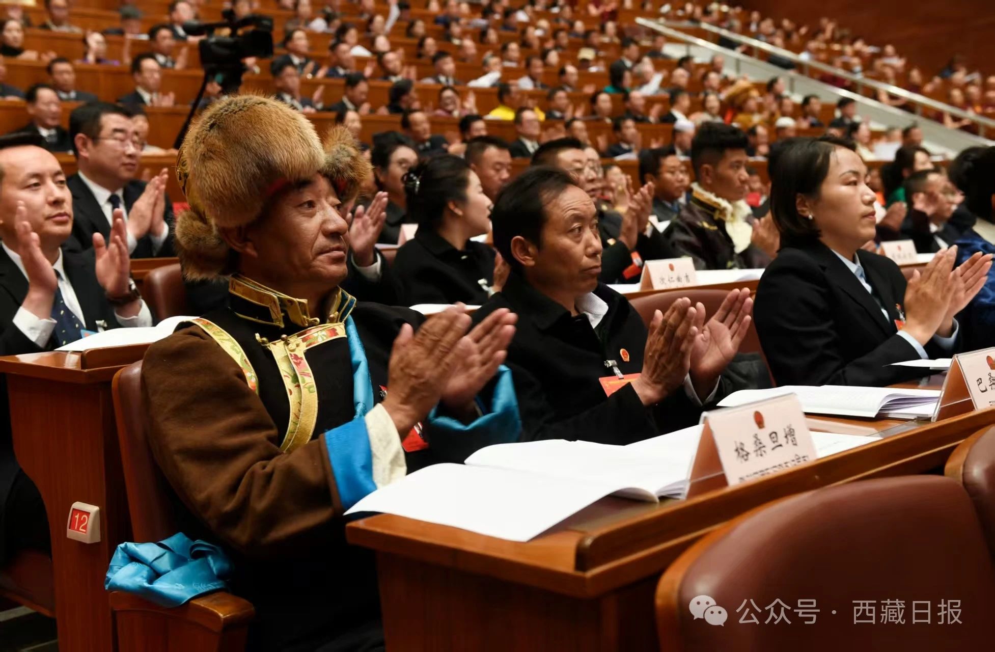 受自治区人大常委会委托,全国人大常委会副委员长、自治区人大常委会主任洛桑江村向大会作自治区人大常委会工作报告。他说,过去一年,在自治区党委坚强领导下,自治区人大常委会坚持以习近平新时代中国特色社会主义思想为指导,全面贯彻党的二十大和二十届二中、三中全会精神,深入贯彻习近平总书记关于坚持和完善人民代表大会制度的重要思想、关于西藏工作的重要指示和新时代党的治藏方略,坚持党的领导、人民当家作主、依法治国有机统一,坚持以推进中华民族共同体建设为主线,按照自治区第十次党代会和历次全会部署,聚焦“四件大事”聚力“四个创建”,依法履职尽责,创造性开展人大工作,为我区长治久安和高质量发展作出了积极贡献。一年来,召开常委会会议7次,审议法规案19件、通过16件,审查批准设区的市地方性法规17件,检查4部法律法规实施情况,法治工作迈出坚实步伐;听取审议各项报告25个,开展专题询问1次并进行满意度测评,开展各类调研53次,作出决议决定19件。