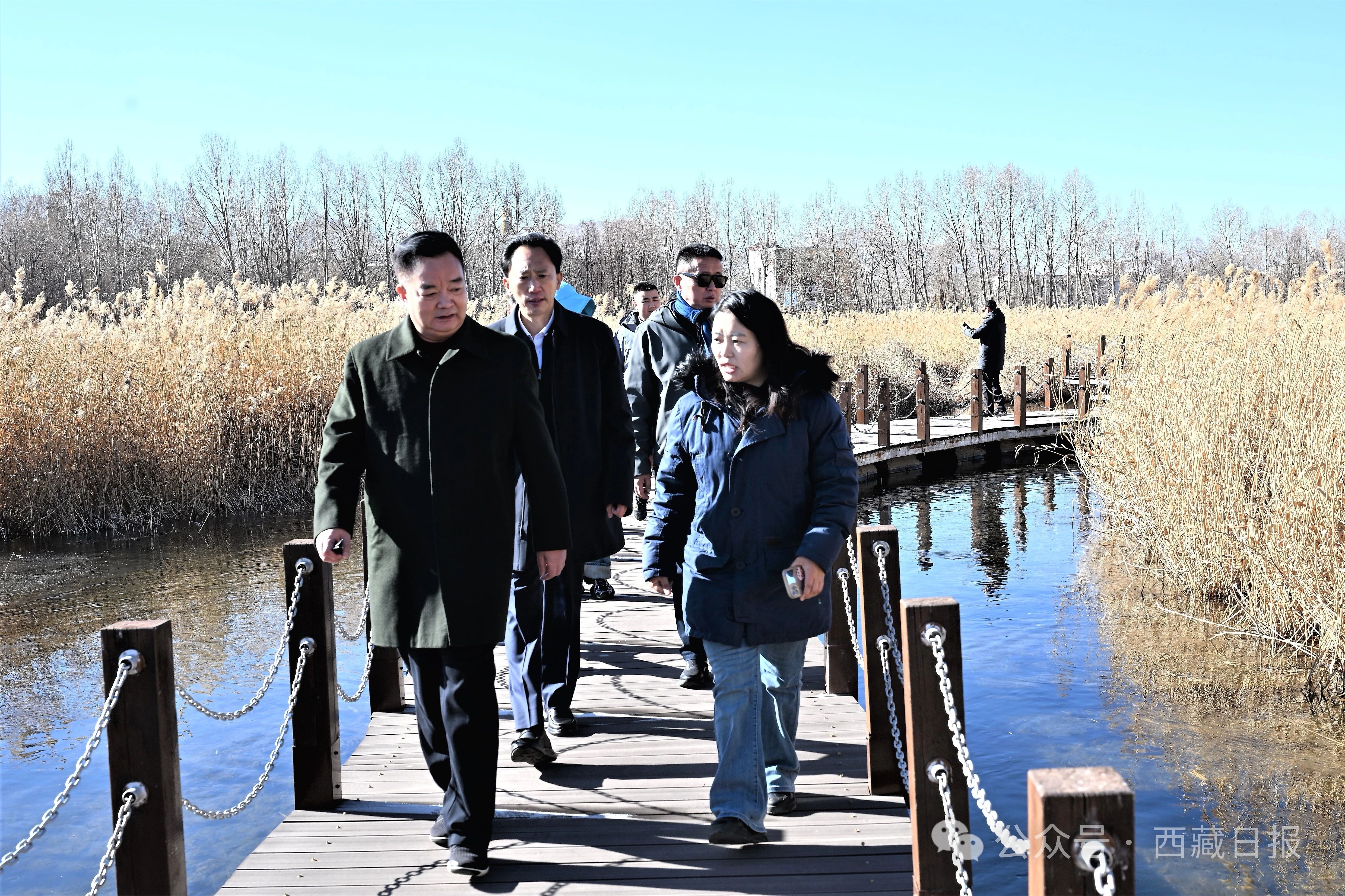 新春的拉鲁湿地,一片宁静祥和。王君正沿着步道边走边看,实地了解湿地水质、植被和生物多样性保护情况,详细询问湿地保护具体措施和取得的成效。指出,拉鲁湿地是“拉萨之肺”,保护好拉鲁湿地对于全区湿地保护工作具有重要示范作用。要总结经验、巩固成果,强化统筹协调,注重细节把控,绵绵用力、久久为功,高标准、高水平、高质量做好拉鲁湿地保护工作。