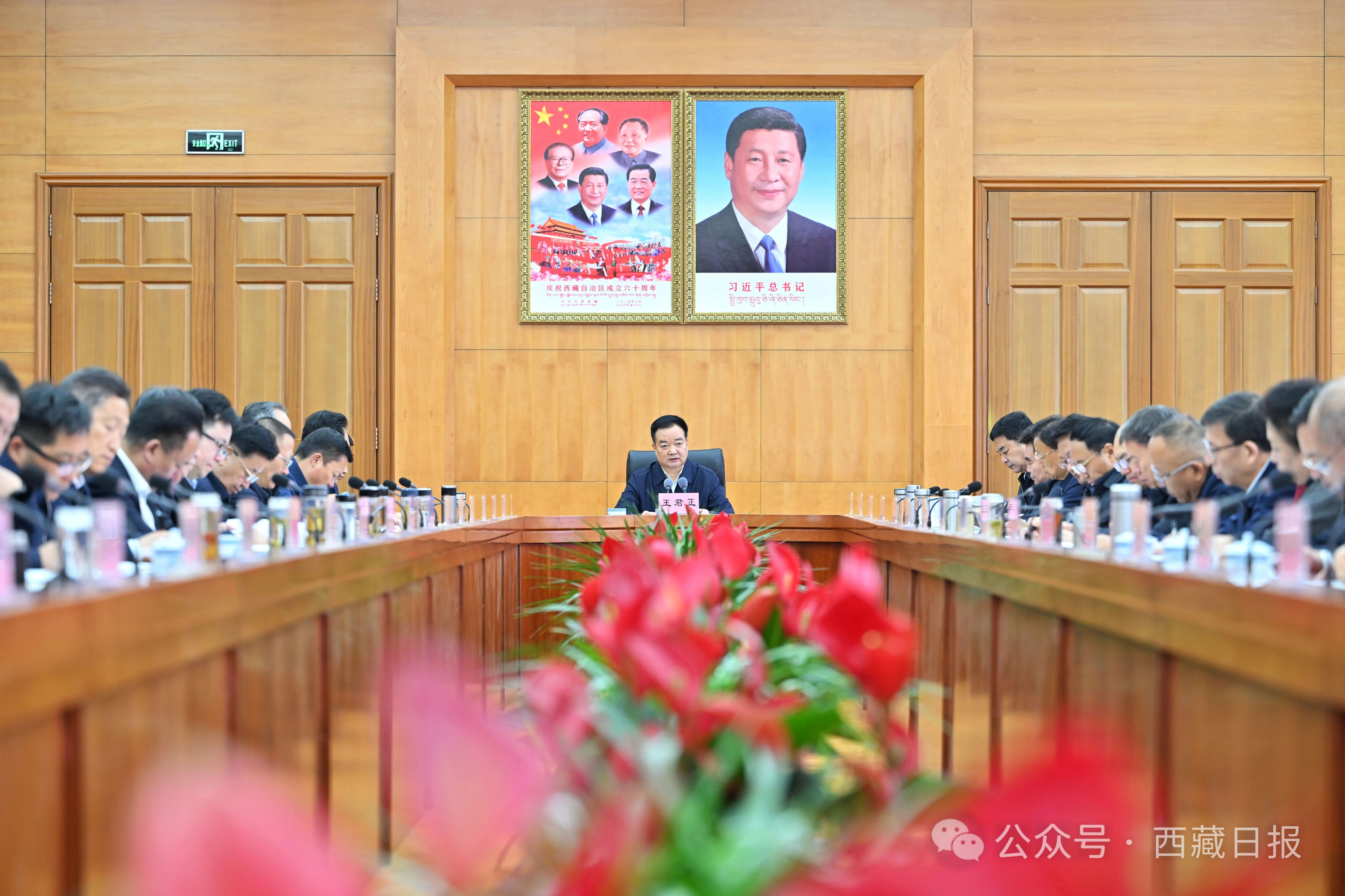 10月15日,自治区党委书记王君正主持召开自治区党委常委会会议,认真传达学习习近平总书记重要讲话重要指示精神,研究我区贯彻落实意见。这是会议现场。记者 旦增西旦 摄