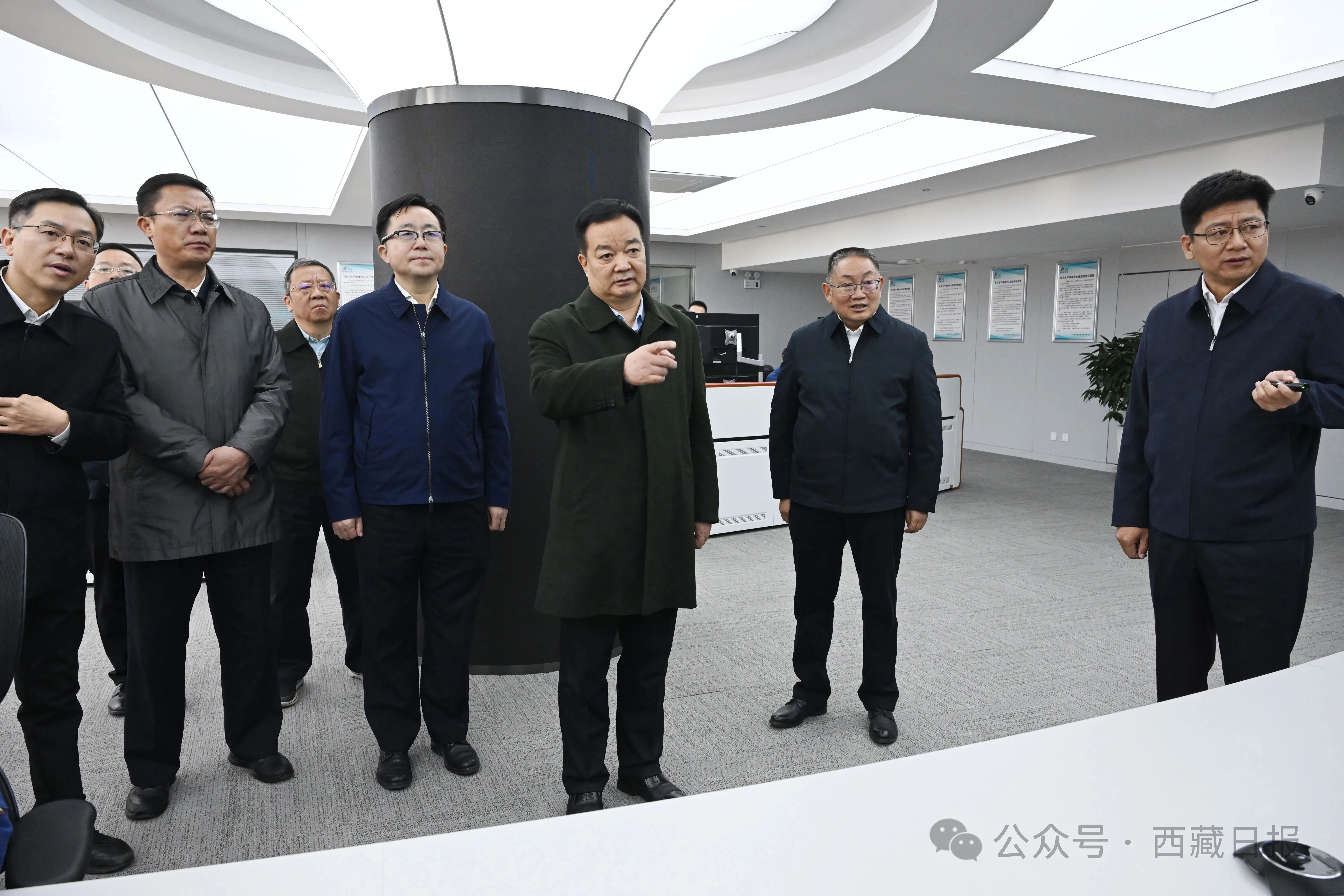 近日,自治区党委书记王君正在区管国有企业调研企业发展经营情况。这是王君正在西藏开发投资集团有限公司详细了解企业深化改革、技术研发、数字化赋能产业发展等情况。记者 李洲 摄