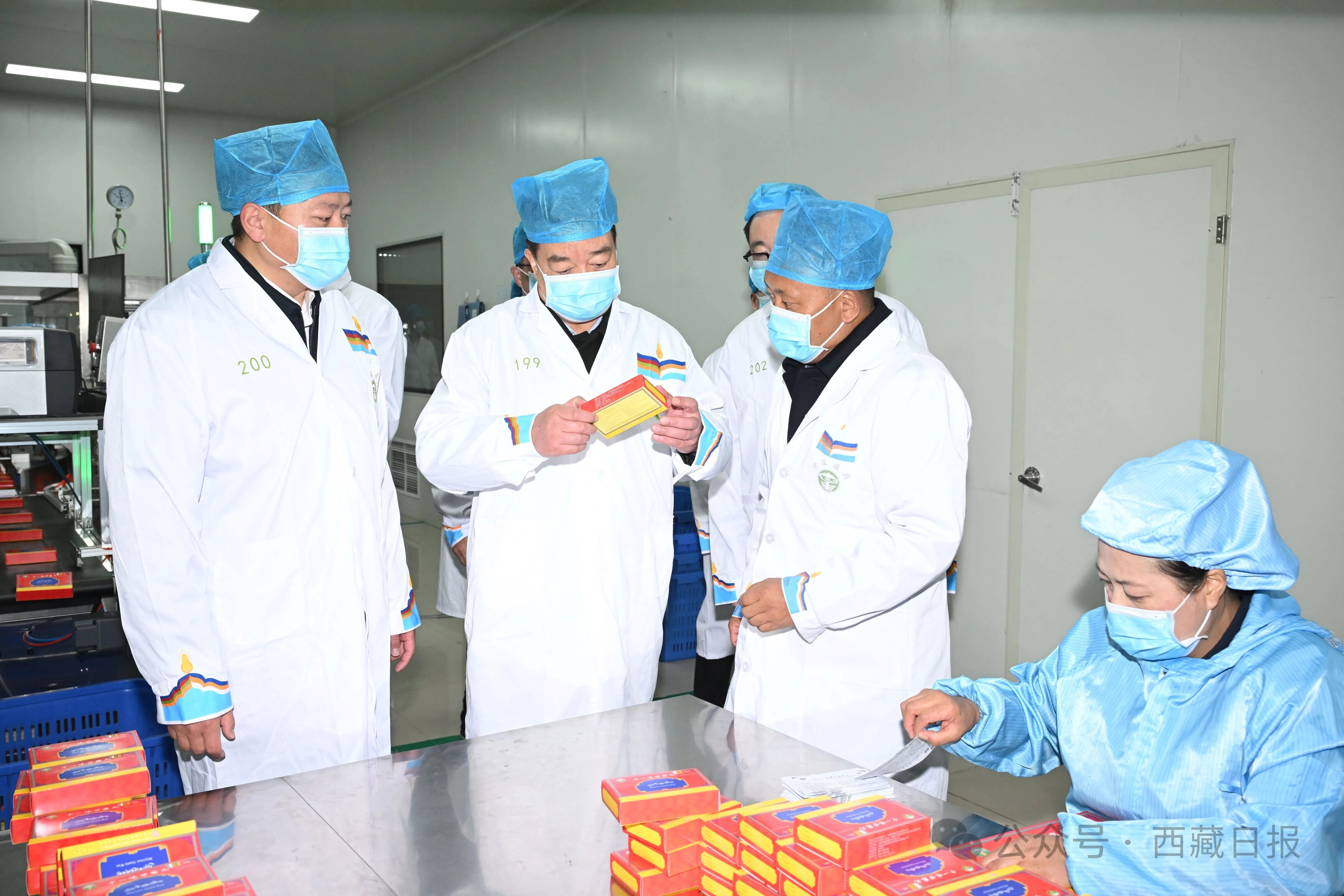 近日,自治区党委书记王君正在区管国有企业调研企业发展经营情况。这是王君正在西藏甘露藏医药产业集团有限公司了解技术研发和藏药产业发展等情况。记者 李洲 摄