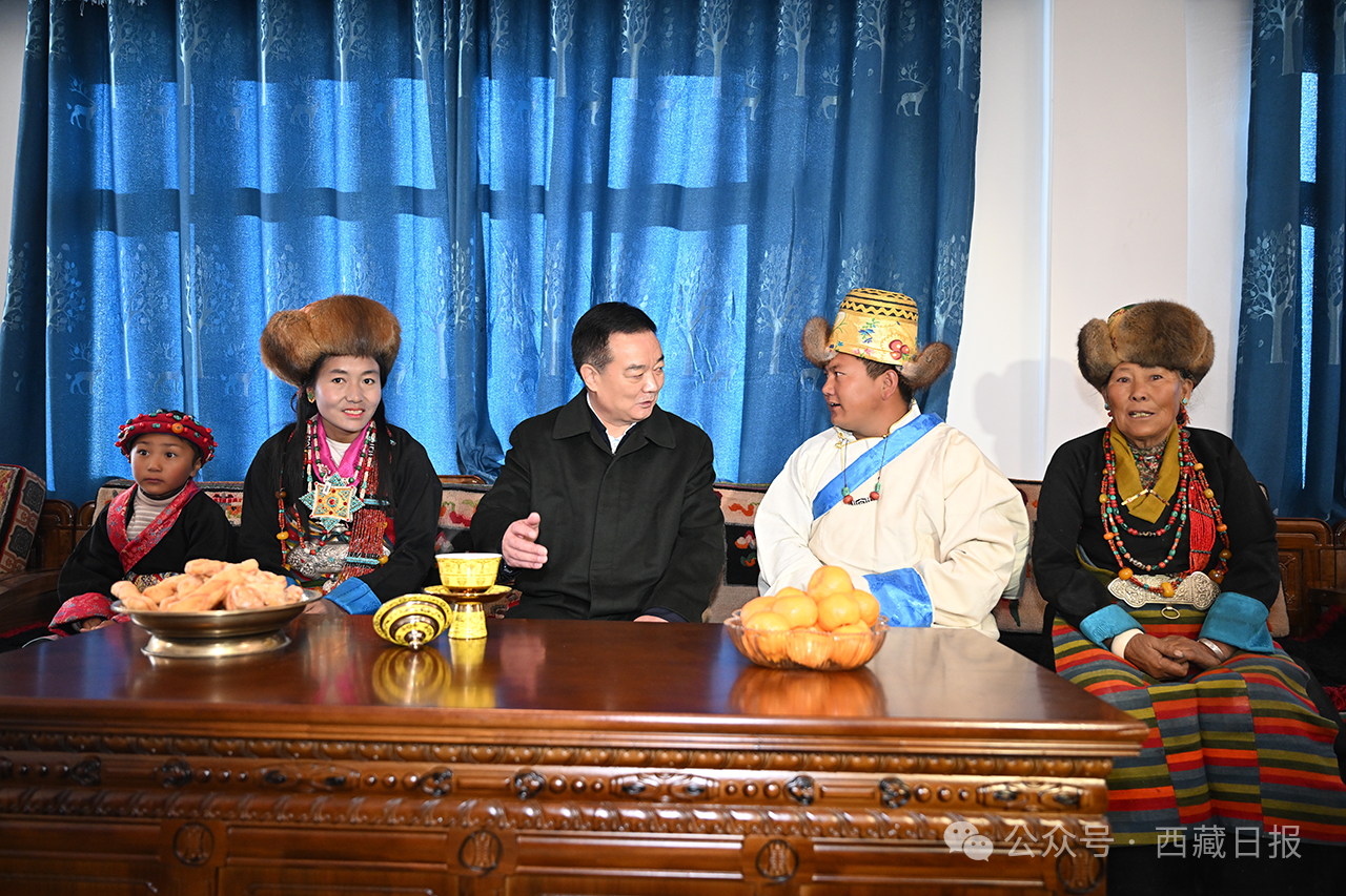 12月2日至3日,自治区党委书记王君正在日喀则市萨迦县、拉孜县调研,宣讲党的二十届四中全会精神和自治区党委十届九次全会精神。这是王君正在萨迦县查荣乡江雄村村民次平家中亲切交谈。记者 旦增西旦 摄