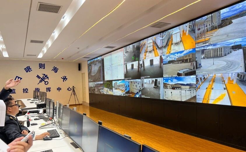 图为日喀则国际陆地港海关监控大屏。来源:中国西藏新闻网