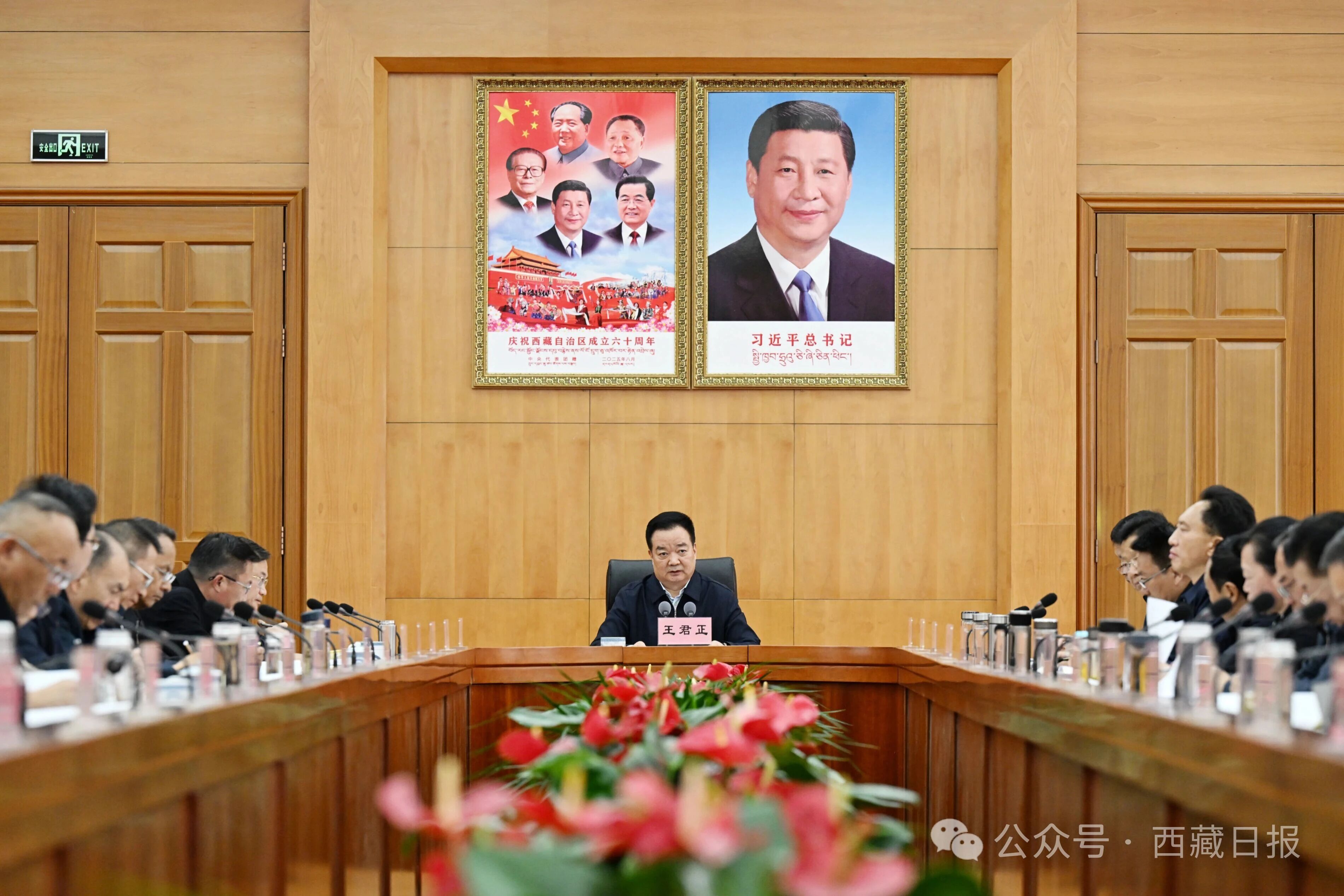 王君正强调,要弘扬理论联系实际的学风,紧密结合西藏实际持之以恒统筹推进“四件大事”落实,努力建设社会主义现代化新西藏。深入贯彻全国两会精神,贯彻落实习近平总书记关于西藏工作的重要指示和新时代党的治藏方略,持续全面深入学习贯彻习近平总书记2025年在西藏视察时的重要讲话精神,不断增强政治自觉思想自觉行动自觉,结合本地区、本部门、本行业实际情况,强化领导、压实责任、细化措施,不折不扣把习近平总书记关于西藏工作的重要指示落到实处。坚决维护社会大局持续稳定,坚持全面依法治藏,进一步加强民族团结进步教育,铸牢中华民族共同体意识、推进中华民族共同体建设,深化拓展“三个意识”教育,积极引导藏传佛教与社会主义社会相适应,不断打牢长治久安的基础。因地制宜推动高质量发展,大力培育发展新质生产力,发展壮大清洁能源、绿色矿业、文化旅游、高原特色农牧等产业,持续扩大有效投资,扎实推进重大项目建设,加快融入全国统一大市场,建设面向南亚开放的重要通道,确保经济发展当前有活力、未来有潜力。坚持改善民生、凝聚人心,把群众身边的小事当作各级党委、政府的大事来抓,深入实施“十大民生工程”,提升公共服务均等化水平,用心用情用力解决好各族群众急难愁盼问题,让发展成果更多更公平惠及全体人民。坚决贯彻落实习近平生态文明思想,严格落实生态环境法典和青藏高原生态保护法,加大国土绿化和生态保护修复力度,科学实施南北山绿化工程,着力推动绿色低碳发展,扎实筑牢国家生态安全屏障。持续加强边境地区建设,大力推进边境基础设施、“智慧边防”建设,因地制宜发展特色产业,不断拓宽边境群众增收渠道,努力建设繁荣稳固的祖国边疆。