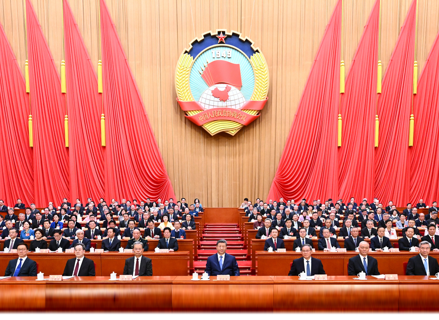 3月4日下午,中国人民政治协商会议第十四届全国委员会第四次会议在北京人民大会堂开幕。这是习近平、李强、赵乐际、蔡奇、丁薛祥、李希、韩正在主席台就座。